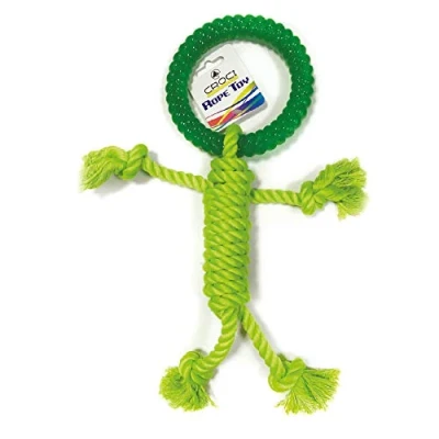 dog toy consisting of one part in resistant rope and a ring TPR The TPR is a thermoplastic rubber, ultra-resistant, non-deformable and floatign Perfect for playing with your dog Dimension 9 cm green color