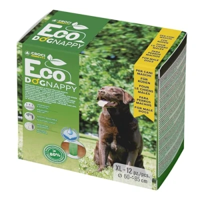 PACKAGE CONTENTS: The package contains 12 dog hygienic wraps in the size 60-85 CM, Size XL Ideal in case of post-operative incontinence and motor difficulties, while traveling or for periods of heat Warning: they are not contraceptives BIODEGRADABLE: Eco Dog Nappies are hygienic band diapers for male dogs made for more than 80 Percent of biodegradable material which, even if disposed of in non-recyclable waste, biodegrade faster than classic absorbent bands ULTRA ABSORBENT: The polymers of which Croci Eco Dog Nappy diapers are made effectively retain urine and keep your dog always dry, avoiding the leakage of liquids WET INDICATOR: The innovative wet indicator allows you to have constant control over your dog's hygiene When the indicator turns colour, you'll know it's time for a diaper change EXCELLENT FIT: The wide elastic and adhesive closure allows you to apply the diapers in complete practicality, guaranteeing your dog's comfort and at the same time a solid seal that resists even the movements of the most lively dogs