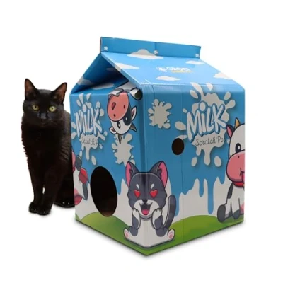 CONTENTS: Cardboard scratching post in closed box format, milk carton design, size 34x34x49 cm SCRATCHING POST IN ECOLOGICAL CARDBOARD: material much loved by cats for the possibility of sharpening their nails and for its insulating property, excellent for relaxing naps, ecological because it is recyclable EXTRA STRONG CARDBOARD: The cardboard used is extra resistant, for greater durability and to also be used as a bed for a nap DOUBLE LAYER, DOUBLE LIFE: The cardboard block is reversible and therefore usable on both sides, for a double life compared to classic scratching posts CONTAINING BOX: The closed box prevents the pieces of cardboard from scattering on the floor, for a tidier and more decorated home thanks to the pleasant patterns; moreover, cats love it because it guarantees their privacy