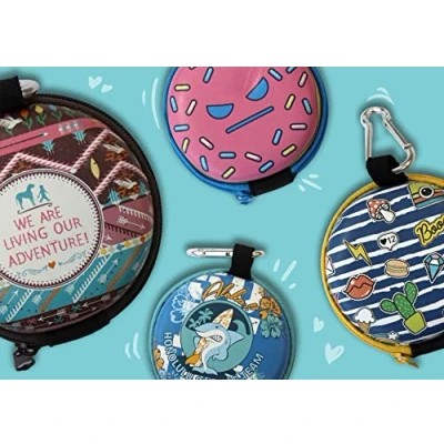 practical dispenser for sanitary bags equipped with hook for hanging on a leash or belt The central hole allows the extraction of the bags with ease Roll of 15 bags included 3 assorted patterns (owls, paws, butterflies)