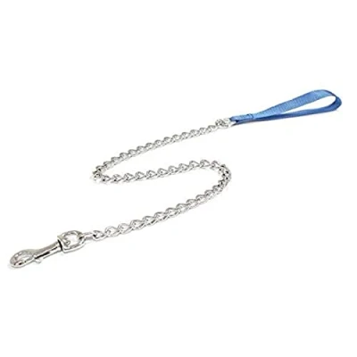 Leash for pets Handle in very strong nylon, chain in silver color Practical and resistant Hook in silver color metal 100x3 cm blue