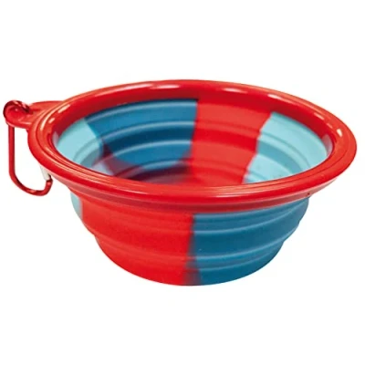 COLLAPSIBLE BOWL: Bowl for dogs and cats made of silicone. Capacity: 350ml. SUITABLE FOR FOOD AND WATER: The DOS bowl is suitable for containing dry, wet food and water for your animal friends TRAVEL FRIENDLY: Collapsible dog bowl expands and folds easily so it can be used and stored in your backpack with ease. WITH CARABINER: The sturdy metal carabiner can be attached to backpacks, bags, leashes and harnesses for easy transport. EASY CLEANING: The material is easily washable using running water.