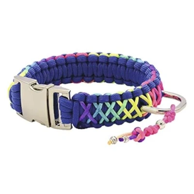Dog collar with silver charm Hand braided Nylon material Metal hook for leash Length: 50 CM