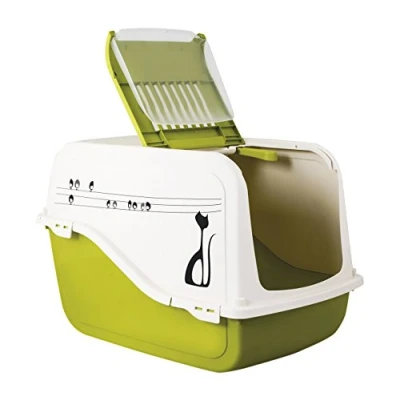 With cute designs printed on sides With carbon filter With handle, door, scoop Size 57x39x38 cm Made in italy