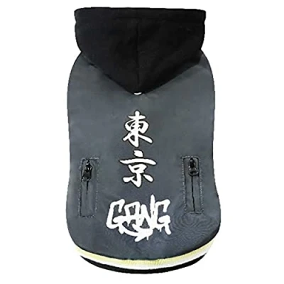 HOODED JACKET FOR DOGS: Croci Tokyo Gang, hooded jacket for medium-sized dogs, 40 cm length PADDED AND SOFT: padded jacket designed to give a touch of fashion to our four-legged friend, keeping him warm thanks to the soft fabric ADJUSTABLE AND SAFE: possibility to adjust the size thanks to the practical velcro; in addition, the elastics on the belly and for the legs guarantee comfort and a better fitting of the garment WITH HOLE FOR COLLAR OR LEASH: thanks to the hole in the upper part it will be possible to wear the jacket with hood directly, without removing leashes, collars or harnesses FOR ALL BREEDS: garment designed to be worn by all breeds, of all sizes, thanks to the different sizes available and the possibility of being adjusted
