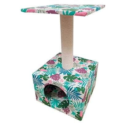 TREE DOG SCRATCHING POST The cat tree with kennel is equipped with a scratch-resistant, solid and sturdy pole, which allows the cat to lie down on it and stretch while scratching it. The dog bed at the bottom gives the cat the opportunity to rest and sleep, while the cat's top base encourages climbing and curiosity. Simple and functional design. FOR ADULTS, SMALL AND LARGE CATS The cat tree scratching post with cat toy provides a wide base for your cat friends and also saves space. Design and colors make it perfect and suitable for any room; The square shape makes it easier to place it in any corner of the house STRONG & SOLID BASE With a solid construction, balanced design and strong base, the cat play tree is sturdy enough to allow fun and climbing, with wear-resistant and scratch-resistant coating. Dimensions: 30 x 30 x 42 cm. Pattern with colourful leaves Sturdy and durable: the base and column are made of cat's wear resistant materials, which can sharpen your nails for a long time, which will not scratch furniture, armchairs, curtains and sofas CROSS PILLAR SCRATCHING TIES The Croci family of cat scratching post is available in various colors, shapes and heights to suit every need; Includes both a single column cat tree and closed dog kennel where your cats can hide, sleep and melt