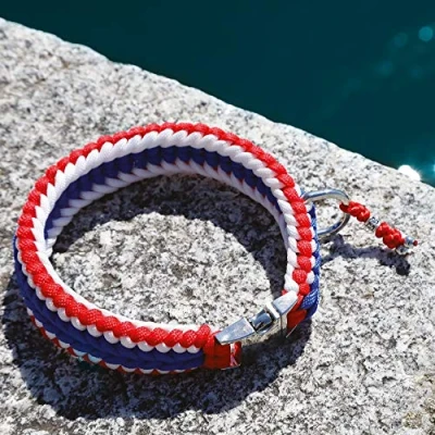 Dog collar with silver charm Hand braided Nylon material. Rainbow pattern Metal hook for leash Length: 30 CM