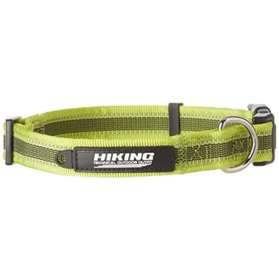 collar for dog High quality nylon, enriched with reflective stitches and rubber parts that prevent slipping and increase the flexibility and comfort. the collars of this line are equipped with a hook for tag and the possibility of adjustment of the circumference. the position of the ring, also, allows to distance the traction strength away from the buckle. HIKING VENTURE range