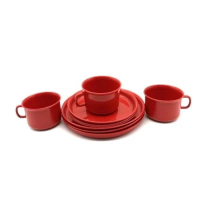 Crockery Set Coffee Service Plastic 3 x Cups 14 cm Plates 18 Red
