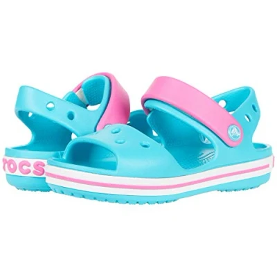 Sizing: Crocs use US sizing worldwide on all footwear, with US size displayed on the sole, use size chart to translate to UK sizes and for further info; UK and EU sizes also located in the tag What size should I buy?: These boys' and girls' Crocs offer a roomy fit, so we recommend ordering a size down from the next largest whole size Sporty look and feel: These girls' and boys' sandals are sporty and lightweight with a signature midsole racing stripe - they are ready for the beach, school or running around the playground Make a splash: Water-friendly and made with buoyant and heat-resistant material, the Crocband sandals are the ultimate holiday shoes for your little one to enjoy poolside or in the garden at home Lightweight and fun: Incredibly light and easy to wear, these sandals for girls and boys are created with Croslite foam, featuring Iconic Crocs Comfort that offers all-day comfort