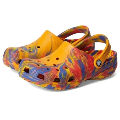 Find Your Size: We recommend sizing up (e.g. if you are a 7.5, size up to an 8) Tie Dye Crocs for Kids: Our new marbled Croslite foam creates a colorful effect that is completely unique. While all marbled shoes have the same wavy look, no two shoes are exactly alike. Versatile and Comfortable: Designed with kids in mind, these girls' and boys' Crocs are incredibly light and easy to wear, featuring iconic Croslite foam for unmatched comfort. The flexible material is sure to be loved by all. Make Them Your Own: These girls' and boys' Crocs offer a roomy and generous fit that is sure to match every foot. The kids' Crocs can be customized with Jibbitz charms to reflect their own personal flair. Shop with Confidence: Crocs products are backed by our 90-day manufacturer's warranty for high quality and authenticity. Terms and conditions apply.