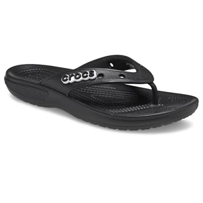 Pick the ideal Crocs size: Crocs use US sizing on the sole; UK sizes follow a one-size conversion (e.g., US M5 | W7 corresponds to UK M4 | W5), If you typically wear a half size, we recommend you order a size up Get the Right Fit: Crocs go by US sizes on the sole. Make sure you're on point with the conversion—check our size chart below! SPORTY LOOK AND FEEL: These unisex flip flops are sporty and LIGHTWEIGHT with the signature midsole racing stripe; they are ready for the beach, garden or anywhere you choose to get your summer on LIGHTWEIGHT AND FUN: Incredibly light and easy to wear, the Crocs women's and men's flip flops are created with Croslite foam, featuring Iconic Crocs Comfort that offers all-day comfort and support FLIP FLOPS FOR WOMEN AND MEN: The flip flops for men and women are extremely easy to clean and quick to dry; water-friendly, heat-resistant and buoyant, they make a great option for summer