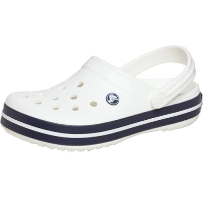 Pick the ideal Crocs size: Crocs use US sizing on the sole; UK sizes follow a one-size conversion (e.g., US M5 | W7 corresponds to UK M4 | W5), If you typically wear a half size, we recommend you order a size up Get the Right Fit: Crocs go by US sizes on the sole. Make sure you're on point with the conversion—check our size chart below! THE CROCBAND CLOG: Fully moulded with Croslite material to cushion the feet, as well as a swinging heel strap which allows for a more secure fit; complete with an added fashion-athletic stripe MAKE A SPLASH: WATER-FRIENDLY and made with buoyant and HEAT-resistant, THE CROCBAND CLOGs are the ultimate pair of holiday shoes, with their LIGHTWEIGHT design weighing only one ounce DURABILITY: These unisex Crocs clogs are a durable build with advanced ventilation and breathability as the innovative design helps drain water and debris when kickin' around in wet conditions Contrast Band Provides A Sporty Twist Fully Moulded Croslite Clog For The Ultimate In Comfort