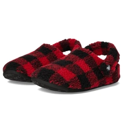 Crocs Unisex Kids Slipper, Classic Buff Check Cozzzy Slipper K, Varsity Red/Black, 11 UK Child