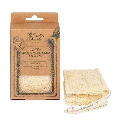 Sustainable alternative for plastic-free kitchen Removes stubborn dirt without scratching Vegan and plastic-free product Two sponges in one pack Made from natural luffa cucumber