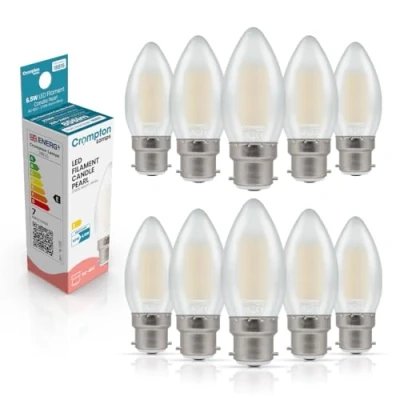 Experience the charm of vintage lighting with the Crompton Lamps LED filament candle light bulbs, featuring a bayonet light bulb design that fits seamlessly into a B22 socket. Enjoy energy efficiency with these 6.5W LED bulbs, which provides the same warm white glow as a traditional 60W incandescent light bulb, making it an ideal choice for energy saving light bulbs. This dimmable light bulb allows you to seamlessly adjust the brightness to suit your mood, making it the ideal B22 LED bulb for creating ambient lighting in any room. With a long lifespan of up to 15,000 hours, this bayonet light bulb is a reliable and cost-effective solution for your lighting needs, reducing the frequency of bulb replacements. The pearl glass design of these decorative light bulbs provides a soft, diffused glow, making them a stylish addition to any fixture, whether used as a table lamp, or bulbs for ceiling lights., Weight: 0.03527396192 pounds, Manufacturer: Crompton Lamps