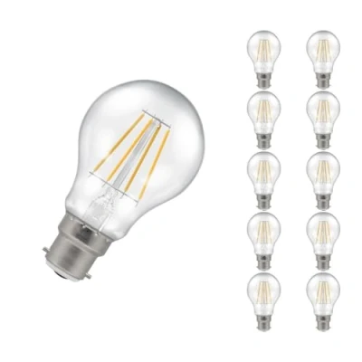 This Crompton Lamps 10.5W LED GLS light bulb with a BC-B22d bayonet (22mm) fitting is a direct replacement for a traditional 100W light bulb, but has the potential to reduce your home lighting bills and reduce the frequency of needing to replace your light bulbs.LED filament technology is much more energy efficient than traditional light bulb technologies such as incandescent bulbs. This not only helps you save on your energy bills but also helps the environment too.Whereas a traditional light bulb would use 100W to produce 1521lm, this LED version uses just 10.5W equating to an energy-efficiency of 145lm/W. This provides a substantial improvement over 100W incandescent light bulbs.The beauty of LED filament light bulbs is truly enchanting, seamlessly blending vintage aesthetics with cutting-edge technology. The LED filaments within these bulbs mimic the classic look of incandescent bulbs, casting a glow that exudes nostalgia. Furthermore, LED filament bulbs extend beyond their aesthetic appeal by providing both energy-efficient operation and long-lasting durability, thus positioning them as a sustainable and environmentally friendly lighting choice.With a long life of 15,000-hours, this LED GLS light bulb boasts an incredible 8.2-year lifespan if used for 5-hours a day. These light bulbs dont need to be replaced as often which results in less money spent on replacement bulbs, and less time spent replacing them, too.Combine this superior longevity, negligible maintenance and replacement costs with the LED light bulbs notable energy efficiency then the savings gleaned from each light bulb has the potential to reduce your lighting costs by up to 90%.Warm white (2700K) bulbs produce a warm, yellow light which is comparable to traditional incandescent bulbs and are most frequently used to create a relaxed atmosphere. This makes them great in any room in your home, but especially in rooms such as the living room or bedroom where you would like to create a comfy atmosphere.Unlike older other energy-saving technologies, LED bulbs light up instantly, with no waiting time to warm up to full brightness.With a size of 60mm diameter with 108mm height, this LED GLS light bulb will retrofit directly to any existing BC-B22d fixture; whether that be smaller domestic light fittings such as ceiling lights or floor lamps or up to large-scale commercial installations.