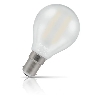 This Crompton Lamps 2.2W dimmable LED golfball light bulb with a SBC-B15d small bayonet (15mm) fitting is a direct replacement for a traditional 25W light bulb, but has the potential to reduce your home lighting bills and reduce the frequency of needing to replace your light bulbs.LED filament technology is much more energy efficient than traditional light bulb technologies such as incandescent bulbs. This not only helps you save on your energy bills but also helps the environment too.Whereas a traditional light bulb would use 25W to produce 250lm, this LED version uses just 2.2W equating to an energy-efficiency of 113.64lm/W.The beauty of LED filament light bulbs is truly enchanting, seamlessly blending vintage aesthetics with cutting-edge technology. The LED filaments within these bulbs mimic the classic look of incandescent bulbs, casting a glow that exudes nostalgia. Furthermore, LED filament bulbs extend beyond their aesthetic appeal by providing both energy-efficient operation and long-lasting durability, thus positioning them as a sustainable and environmentally friendly lighting choice.With a pearl finish, this light bulb is designed to softens the light and reduce glare.With a long life of 15,000-hours, this LED golfball light bulb boasts an incredible 8.2-year lifespan if used for 5-hours a day. These light bulbs dont need to be replaced as often which results in less money spent on replacement bulbs, and less time spent replacing them, too.Combine this superior longevity, negligible maintenance and replacement costs with the LED light bulbs notable energy efficiency then the savings gleaned from each light bulb has the potential to reduce your lighting costs by up to 91%.This dimmable lamp features DuoDim™ Technology making it compatible with most leading and trailing edge dimmers; however, in testing, we have found that Varilight V-Pro dimmers produce the best dimming results.Warm white (2700K) bulbs produce a warm, yellow light which is comparable to traditional incandescent bulbs and are most frequently used to create a relaxed atmosphere. This makes them great in any room in your home, but especially in rooms such as the living room or bedroom where you would like to create a comfy atmosphere.Unlike older other energy-saving technologies, LED bulbs light up instantly, with no waiting time to warm up to full brightness.With a size of 45mm diameter with 80mm height, this LED golfball light bulb is a small round light bulb that will retrofit directly to any existing SBC-B15d fixture; whether that be smaller domestic light fittings such as bedside lamps or fixtures with limited space or up to large-scale commercial installations.