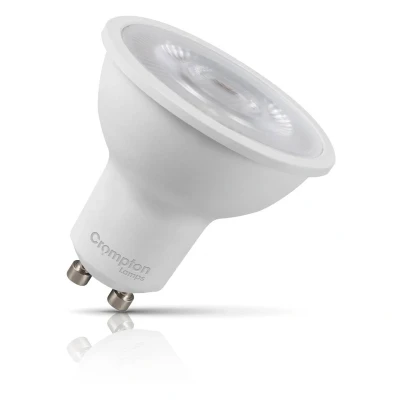 Introducing the high-performance Crompton Lamps 3.5W LED GU10 spotlight bulb, designed as a direct replacement for a traditional 50W halogen bulb. These energy-efficient LED light bulbs not only help lower your lighting bills but also extend the time between replacements, making it a smart choice for any home.This GU10 spotlight LED bulb is significantly more efficient than incandescent alternatives. While a traditional bulb consumes 50W to produce 500 lumens, our LED version achieves the same output with just 3.5W, boasting an impressive energy efficiency of 143 lumens per watt.this LED bulb features a lightweight thermal plastic housing with an internal aluminium heatsink that is specifically designed to dissipate heat very effectively. This reduces the light bulb's running temperature and places less strain on its components resulting in a longer life span.With a remarkable lifespan of 15,000 hours, this GU10 spotlight bulb can last up to 8.2 years when used for 5 hours daily, resulting in fewer replacements and lower costs.The cool white (4000K) light emitted by this bulb creates a crisp, clean atmosphere, making them ideal for kitchens and bathrooms. Unlike older energy-saving technologies, this LED bulb illuminates instantly, eliminating any waiting time for full brightness.Experience the benefits of our LED GU10 spotlight light bulb, which combines superior longevity, minimal maintenance, and exceptional energy efficiency, potentially reducing your lighting costs by up to 93%. Upgrade your home lighting with this reliable and stylish LED bulb today.