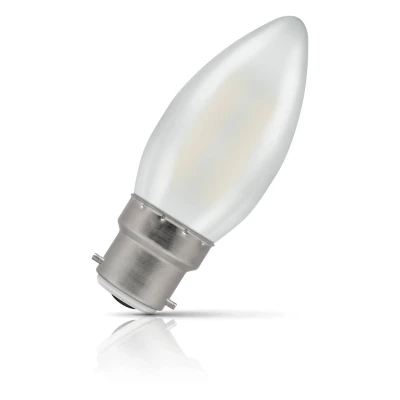 This Crompton Lamps 2.2W LED candle light bulb with a BC-B22d bayonet (22mm) fitting is a direct replacement for a traditional 25W light bulb, but has the potential to reduce your home lighting bills and reduce the frequency of needing to replace your light bulbs.LED filament technology is much more energy efficient than traditional light bulb technologies such as incandescent bulbs. This not only helps you save on your energy bills but also helps the environment too.Whereas a traditional light bulb would use 25W to produce 250lm, this LED version uses just 2.2W equating to an energy-efficiency of 113.64lm/W.The beauty of LED filament light bulbs is truly enchanting, seamlessly blending vintage aesthetics with cutting-edge technology. The LED filaments within these bulbs mimic the classic look of incandescent bulbs, casting a glow that exudes nostalgia. Furthermore, LED filament bulbs extend beyond their aesthetic appeal by providing both energy-efficient operation and long-lasting durability, thus positioning them as a sustainable and environmentally friendly lighting choice.With a pearl finish, this light bulb is designed to softens the light and reduce glare.With a long life of 15000-hours, this LED candle light bulb boasts an incredible 8.2-year lifespan if used for 5-hours a day. These light bulbs dont need to be replaced as often which results in less money spent on replacement bulbs, and less time spent replacing them, too.Combine this superior longevity, negligible maintenance and replacement costs with the LED light bulbs notable energy efficiency then the savings gleaned from each light bulb has the potential to reduce your lighting costs by up to 91%.Warm white (2700K) bulbs produce a warm, yellow light which is comparable to traditional incandescent bulbs and are most frequently used to create a relaxed atmosphere. This makes them great in any room in your home, but especially in rooms such as the living room or bedroom where you would like to create a comfy atmosphere.Unlike older other energy-saving technologies, LED bulbs light up instantly, with no waiting time to warm up to full brightness.With a size of 35mm diameter with 91mm height, this LED candle light bulb will retrofit directly to any existing BC-B22d fixture; whether that be smaller domestic light fittings such as chandeliers or wall sconces or up to large-scale commercial installations.
