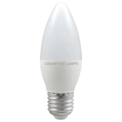 This Crompton Lamps 4.9W LED candle light bulb with a ES-E27 Edison screw (27mm) cap is a retrofit replacement for a incandescent 40W light bulb, but has the potential to reduce your home lighting bills and reduce the frequency of needing to replace your light bulbs.LED technology has superior energy efficiency than traditional incandescent or halogen light bulbs which helps you save on your energy bills and helps the environment too.Whereas a traditional light bulb would use 40W to produce 470lm, this LED version uses just 4.9W equating to an excellent energy-efficiency of 96lm/W.This high-performance LED light bulb sports a thermal plastic body that is specifically designed to dissipate heat effectively. This reduces the light bulb's running temperature and places less strain on its components resulting in a longer life span.With a long life of 25,000-hours, this LED candle light bulb boasts an incredible 13.7-year lifespan if used for 5-hours a day. These light bulbs dont need to be replaced as often which results in less money spent on replacement bulbs, less time spent replacing them, and less old light bulbs going to landfill too.Combine this superior longevity, negligible maintenance and replacement costs with the LED light bulbs notable energy efficiency; then the savings from each light bulb has the potential to reduce your lighting costs by up to 88%.Cool white (4000K) bulbs produce a cooler, crisp light and are well suited to more stimulating environments. This makes them great in kitchens, workplaces and is also excellent for bathrooms as there is no colour cast; so applying makeup is much easier.Unlike older other energy-saving technologies, LED bulbs light up instantly, with no waiting time to warm up to full brightness.This LED candle light bulb will retrofit directly to any existing ES-E27 fixture; whether that be smaller domestic light fittings such as chandeliers or wall sconces or up to large-scale commercial installations.