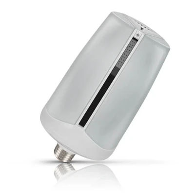 Crompton Lamps first sound and motion activated commercial bulb with 7-metre detection radius. Ideal for making safe and eco-friendly working environments.Works on 30% of its power capacity when not activated for 90 seconds, making it a smart choice for any large commercial areas. Alternative to traditional corn shape bulb with added benefit of modern design. Constructed from a heat dissipating plastic-coated aluminium body, the lamp features a bright 3800 Lumen light output with a 25,000 hour lifespan.