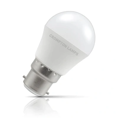 This Crompton Lamps 4.9W LED golfball light bulb with a BC-B22d bayonet (22mm) cap is a retrofit replacement for a incandescent 40W light bulb, but has the potential to reduce your home lighting bills and reduce the frequency of needing to replace your light bulbs.LED technology has superior energy efficiency than traditional incandescent or halogen light bulbs which helps you save on your energy bills and helps the environment too.Whereas a traditional light bulb would use 40W to produce 470lm, this LED version uses just 4.9W equating to an excellent energy-efficiency of 96lm/W.This high-performance LED light bulb sports a thermal plastic body that is specifically designed to dissipate heat effectively. This reduces the light bulb's running temperature and places less strain on its components resulting in a longer life span.With a long life of 25,000-hours, this LED golfball light bulb boasts an incredible 13.7-year lifespan if used for 5-hours a day. These light bulbs dont need to be replaced as often which results in less money spent on replacement bulbs, less time spent replacing them, and less old light bulbs going to landfill too.Combine this superior longevity, negligible maintenance and replacement costs with the LED light bulbs notable energy efficiency; then the savings from each light bulb has the potential to reduce your lighting costs by up to 88%.Daylight (6500K) bulbs replicate the natural light seen on an overcast day. This colour can be used for areas where accurate colour reproduction is required, such as task lighting, retail display and workplaces and displays colours naturally as if they were outside.Unlike older other energy-saving technologies, LED bulbs light up instantly, with no waiting time to warm up to full brightness.This LED golfball light bulb is a small round light bulb that will retrofit directly to any existing BC-B22d fixture; whether that be smaller domestic light fittings such as bedside lamps or fixtures with limited space or up to large-scale commercial installations.