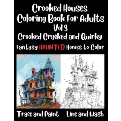 Crooked Houses Coloring Book For Adults Vol 3: Cracked and Quirky Fantasy Haunted Homes to Color Trace Paint Line Wash