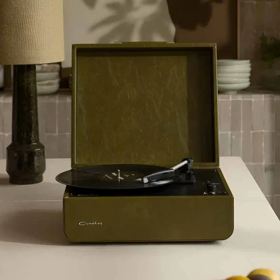 Crosley Mercury Portable Turntable Bluetooth Record Player, 3 Speed Suitcase Vinyl Home Turntables for Records, Built in Stereo Speakers & Receiver, AUX Input, Green