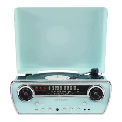 Crosley Powel 7 in 1 Record Player with Speakers & CD Vintage Car Design Bluetooth Turntable Entertainment System AM/FM Radio Retro Aqua Style for Vinyl, Digital Wireless Music