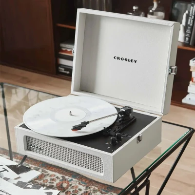 Crosley Voyager Portable Turntable Bluetooth Record Player, 3 Speed Suitcase Vinyl Home Turntables for Records, Built in Stereo Speakers & Receiver, AUX Input, Dune