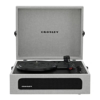 Crosley Voyager Portable Turntable Bluetooth Record Player, 3 Speed Suitcase Vinyl Home Turntables for Records, Built in Stereo Speakers & Receiver, AUX Input, Grey