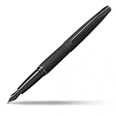The new Cross ATX Metallic combine substance and style to create a modern and sleek profile for those who want to stand-out. This fashionable fountain pen with exquisite diamond-pattern engraving is a work of art to be treasured / Lies comfortably and balanced in the hand, this writing pen includes 2 Black Fountain Pen Cartridges ( #8921, other ink colours available) with specially formulated ink that flows flawlessly Items included: CROSS ATX Brushed Metallic Black Fountain Pen with diamond-pattern and fine stainless steel nib, incl. Lifetime Mechanical , gift box The refillable fountain pen also comes with the CROSS Lifetime Mechanical and a luxurious gift box which makes this writing instrument a perfect present for any occasion If the ink is struggling to flow through the nib, please remove the nib section and run hot water through it. This will help to clean and unblock