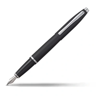 BrepenA matt black finish accented with a polished chrome centrepiece band and accents. The Cross Calais Matte Black CT is available as a fountain pen, rollerball, ballpoint.