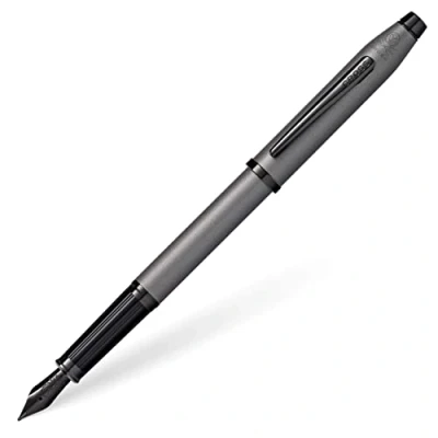 The Century II collection combines the classic Cross design and grace of the Classic Century fountain pen with a bolder look and a wider profile A tasteful and timeless interplay of gunmetal grey and polished black PVD appliqués This fountain pen is equipped with a medium stainless steel nib and two standard black ink cartridges #8921 (also available in blue #8920) The refillable pen sits comfortably in the hand. Specially formulated cross ink flows flawlessly for a superior writing feel and impressive handwriting Box contents: Cross Century II fountain pen in gunmetal grey, nib size M, includes two black ink cartridges, delivered in a luxury gift box