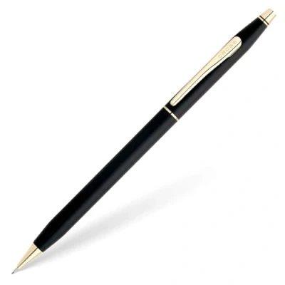 The elegant pens and pencils of the CROSS Classic Century Collection feature a sleek profile and patented twist-action barrel This mechanical pencil features an enduringly handsome satin black finish, accentuated by 23 karat gold-plated appointments /Its lighter composition makes it very agile This CROSS pencil comes with 3 Pencil Leads (#8742) and 1 Pencil Eraser (#8753) in pencil The pencil also comes with the CROSS Lifetime Mechanical Guarantee and a luxurious gift box which makes this writing instrument a perfect present for any occasion Items included: CROSS Classic Century Classic Black 0.7MM Pencil with 23CT gold-plated appointments, incl. CROSS Lifetime Mechanical Guarantee, premium gift box