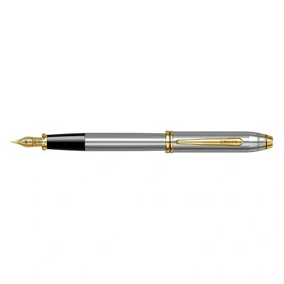 Cross Townsend Refillable Click Off Cap Metal Fountain Pen with 23 Carat Gold Plated Appointments, Medium Nib, includes Premium Gift Box and Black Cartridge, 1 Pack, Medalist