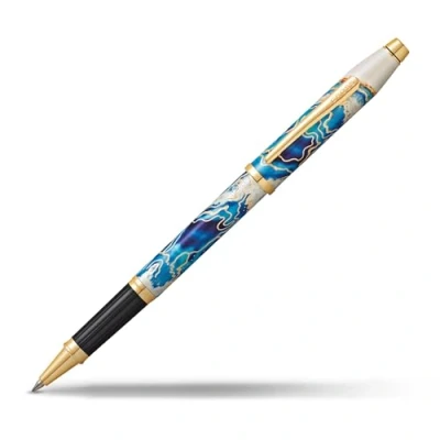Maltese-inspired blue design on white lacquer with gold-plated engravings and appointments Click-off cap Specially formulated ink flows flawlessly for a superior writing experience Includes one black gel ink selectip rollerball tip in pen (refill #8523) Presented in a premium Cross gift box and covered by a lifetime Mechanical warranty