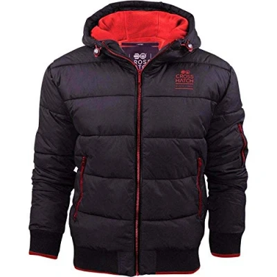 Crosshatch Mens Althorpe’ Quilted Padded Hood Jacket Fleece Lined Winter Coat. M Black Red