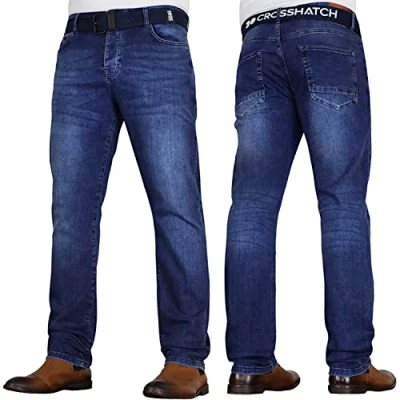 Crosshatch Mens Straight Leg Fashion Jeans Trousers Regular Fit Stylish Branded Denim by JeanBase Darkwash 32W X 32L