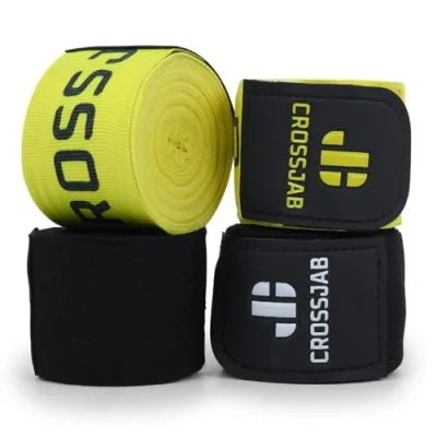 CROSSJAB Boxing hand Wraps pack of 2 Inner Gloves, 4.5m Elasticated Thumb Loop Bandages, Men Women Under Mitts Straps Wrist Protection, Muay Thai MMA Kickboxing Martial Arts, Speed Bag Punching