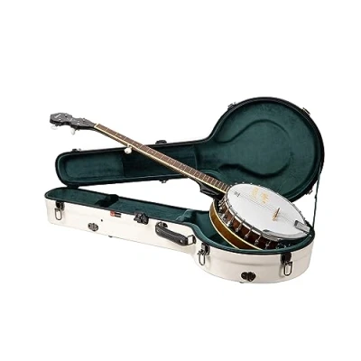 🪕 Precision Fit for 5-String & Mastertone Banjos Moulded interior fits Mastertone-style and most full-size 5-string resonator banjos, including space for tall bridges and resonator depth. 🛡️ Tough Fibreglass Shell – Designed for Touring Crafted from premium fibreglass with high-impact resistance and thermal protection—ideal for flights, festivals, or everyday gigging. 🔒 TSA Lock + Accessory Storage + Hygrometer Built-in TSA-compliant lock ensures safe travel. The internal storage compartment holds tuners and picks, along with a hygrometer to monitor humidity. 🧵 Suspension Padding + Adjustable Interior Fit Includes suspension support and removable foam pads—customisable fit reduces movement and shields your instrument from shock and pressure. 🎒 Backpack Straps + Leather Handle for Transport Comes with deluxe padded straps for backpack-style carry and a leather side handle—offering multiple options for comfortable transport.