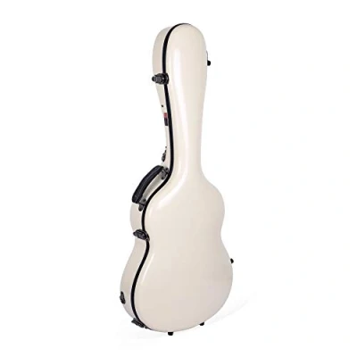 Crossrock Fiberglass Classical Guitar Case for 4/4 Nylon String Gloss Ivory Shell, TSA Lock, Blue Velvet Interior Deluxe Hardshell with Backpack Straps