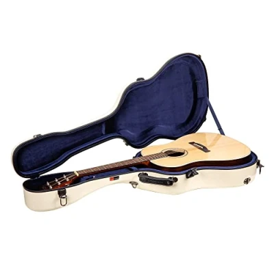 Crossrock Fiberglass Guitar Case Fits 40"/41" Dreadnought Acoustic Padded Straps, Interior Compartment, Fixed & Removable Paddings, Hygrometer Includes TSA Lock Ivory (CRF2021DIV)