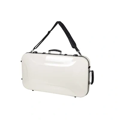 Crossrock Fibreglass Double Mandolin Case Holds Two A & F Style Mandolins, Milky White Finish, TSA Lock, Storage Compartments, Carry Straps (CRF2020DMMW)