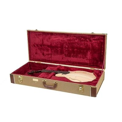 Crossrock Hard Shell Wooden Case fits F Style Mandola Stainless Steel Latches, Sponge Lining, Metal Feet, Storage Space Vinyl Tweed (CRW620MLTW R)