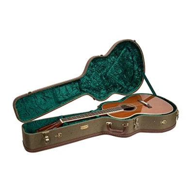 Designed for Martin 12 Frets 000/OM Style Acoustic Guitar Plush interior, dense layer of foam padding makes this guitar case the deluxe vintage look Interior storage compartment offers secure hideaways for strings, and accessories Leather handle makes it comfortable and easy to take your case on the road Upgraded deluxe latches, high-quality cloth covered and hinges provide protection against the damages, dings, and bumps. The frame is made of FSC-Certified wood.