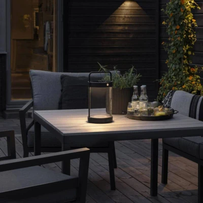 The Crotone Outdoor Portable Lantern is a modern lighting solution designed for versatility and aesthetic appeal. Crafted with high-quality materials, this lantern features an elegant aluminum housing in a subtle black finish, complemented by a glass insert that enhances its contemporary style. With an IP54 rating, the Crotone is robust and rainproof, making it suitable for permanent outdoor use on your terrace, patio, or in the garden.