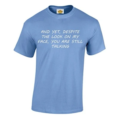 Crown Designs and Yet Despite The Look on My Face Funny Cool for Men & Teenagers T Shirts Tops Carolina Blue/X Large