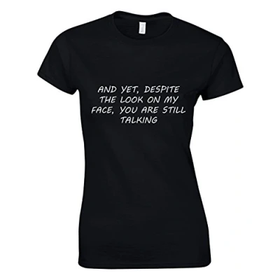 Crown Designs and Yet Despite The Look on My Face Funny for Women & Teenagers Fitted T Shirts Tops Black/XXL 14/16